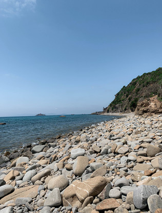 We gathered our things, stuffed them into my super-sized Wayúu bag, and headed to the ocean one last time to get a splash of cool water before heading out. My boyfriend fearlessly plunged into the sea, but I was more hesitant, making my way one rock and the time slipping every now and then on a thin coat of sea moss. I held my breath, thought good thoughts, and hopped into the water as I let out a sharp squeal. We floated unbothered for a couple of minutes until my boyfriend's tummy grumbled in protest, almost like if it was trying to communicate with mine. We listened and waddled out of the water as we stepped on those hot stones once again. We threw on some clothes on top of our wet bathing suits and climbed on top of a bright yellow motorino that my boyfriend had had since he was 16 years old. I tightly buckled my helmet, and we were off.